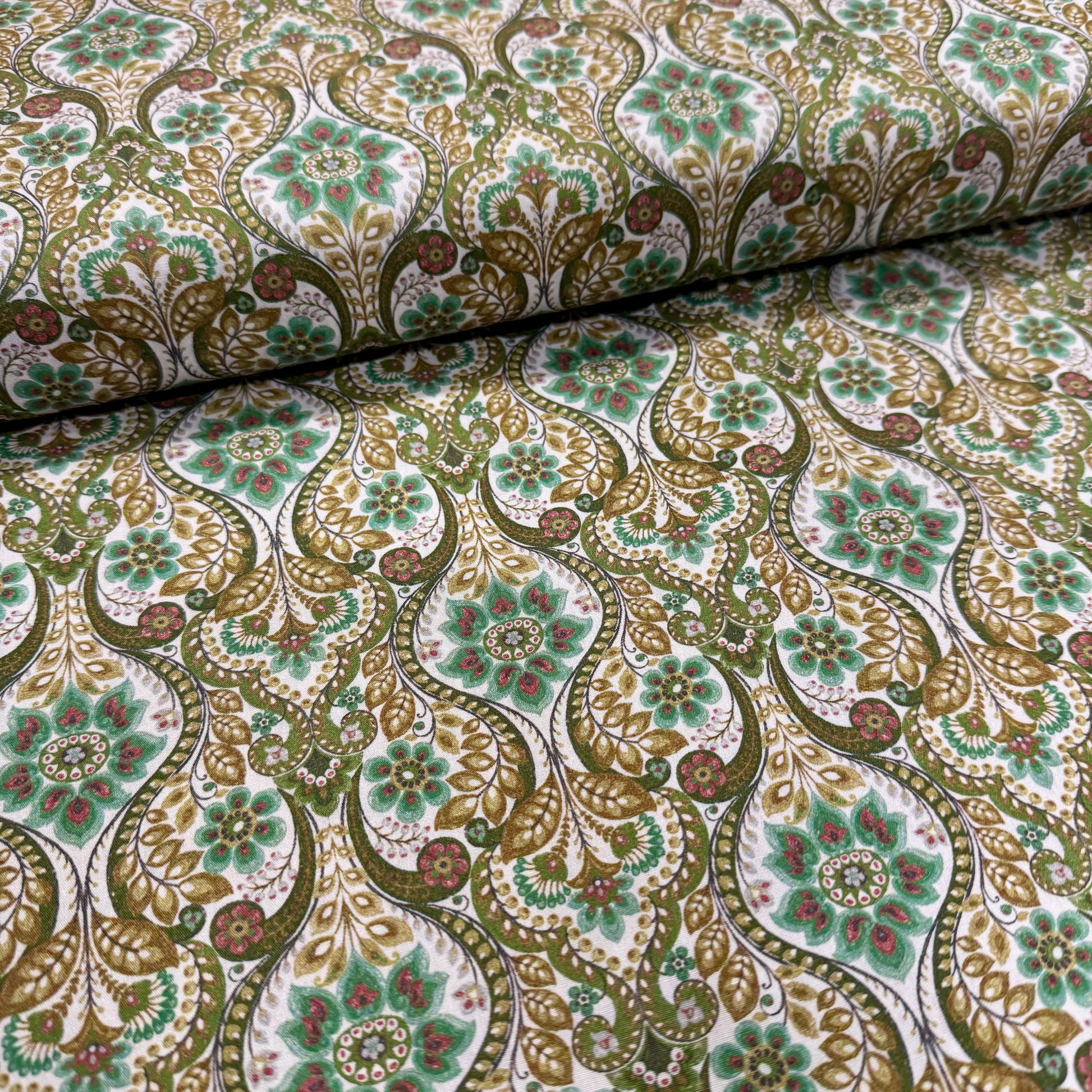 100% cotton poplin print. Fabric measures 58" (148cm) approximately in width. Fabric is sold by the metre. Please be aware of differences in computer monitors when colour matching. Shades on screen cannot be guaranteed to be an exact representation of the fabric's true tone.