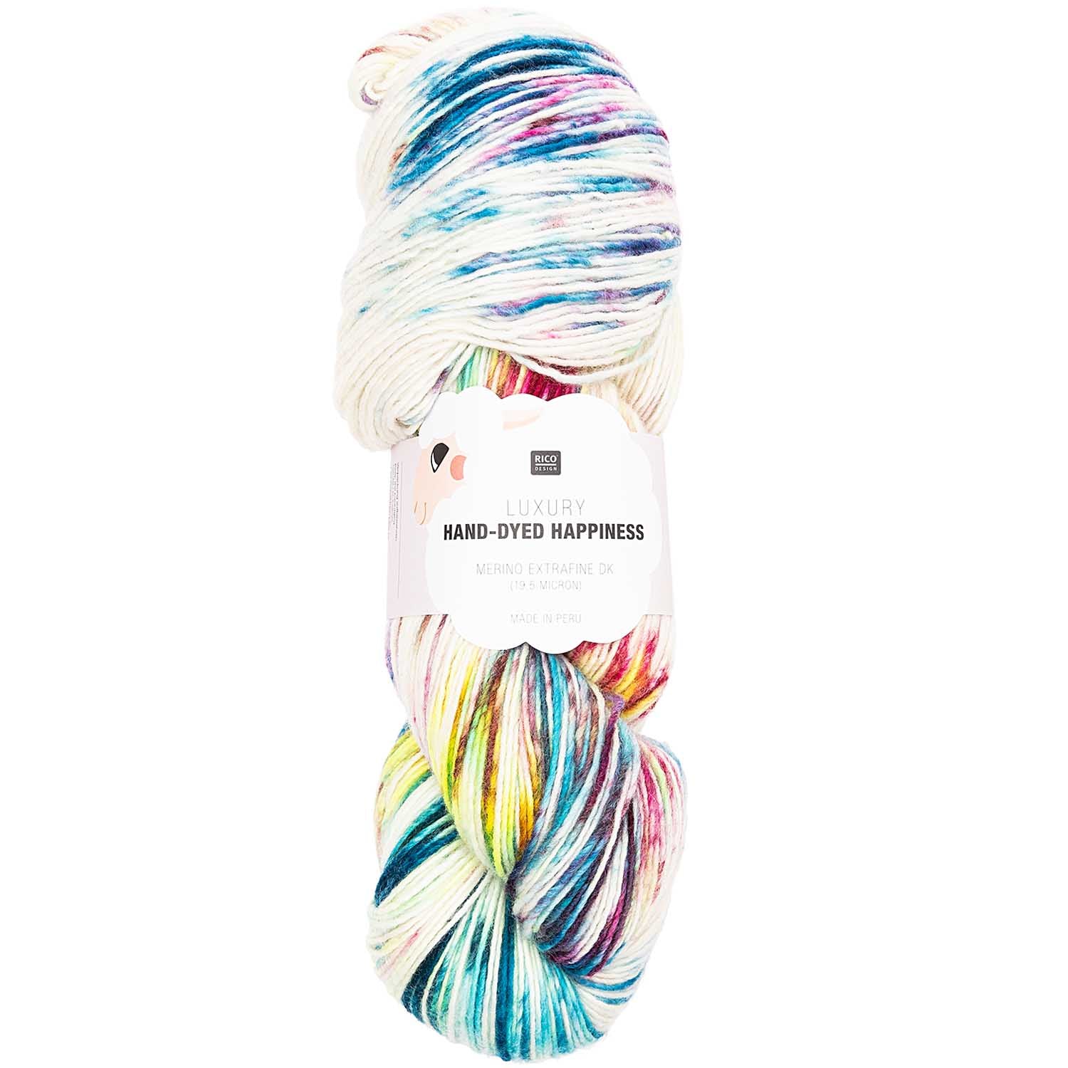 Introducing Hand-Dyed Happiness, a new range of luxury yarn from Rico. Each skein 100% merino wool that has been hand dyed to create gorgeous contempory colour ways. Each skein is completely unique, but when using more than one ball per project, the yarn blends seamlessly.
