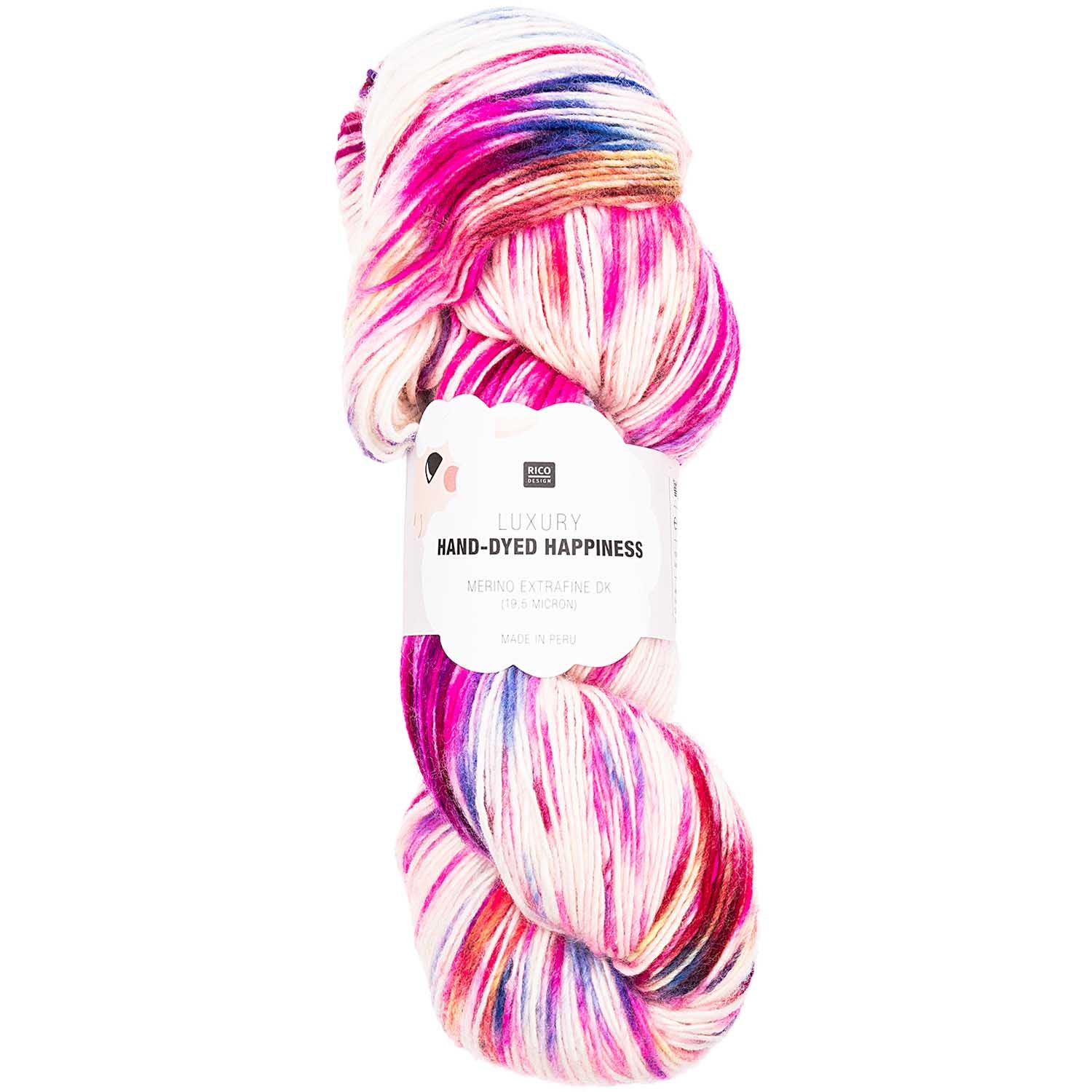 Introducing Hand-Dyed Happiness, a new range of luxury yarn from Rico. Each skein 100% merino wool that has been hand dyed to create gorgeous contempory colour ways. Each skein is completely unique, but when using more than one ball per project, the yarn blends seamlessly.